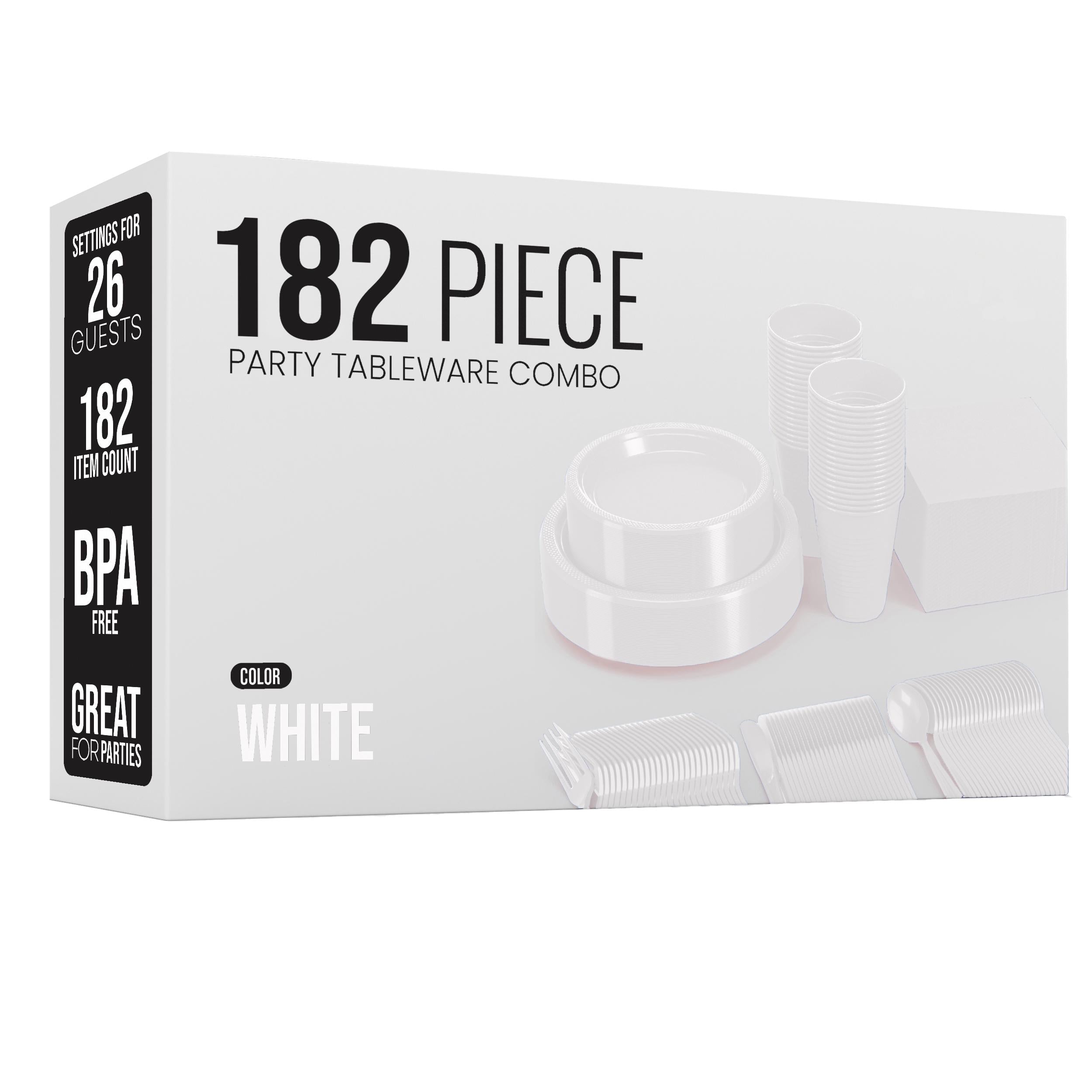 Introducing the 182 Piece Combo Set - Service For 26 - White, your perfect solution for all your event needs! Whether you’re planning a birthday party, a school event, or an outdoor picnic, this disposable tableware set is designed to simplify your entertaining experience. With vibrant colors and a clean white design, our party tableware combo brings elegance to any holiday gathering or large celebration, allowing you to serve your guests without the hassle of washing dishes afterwards.