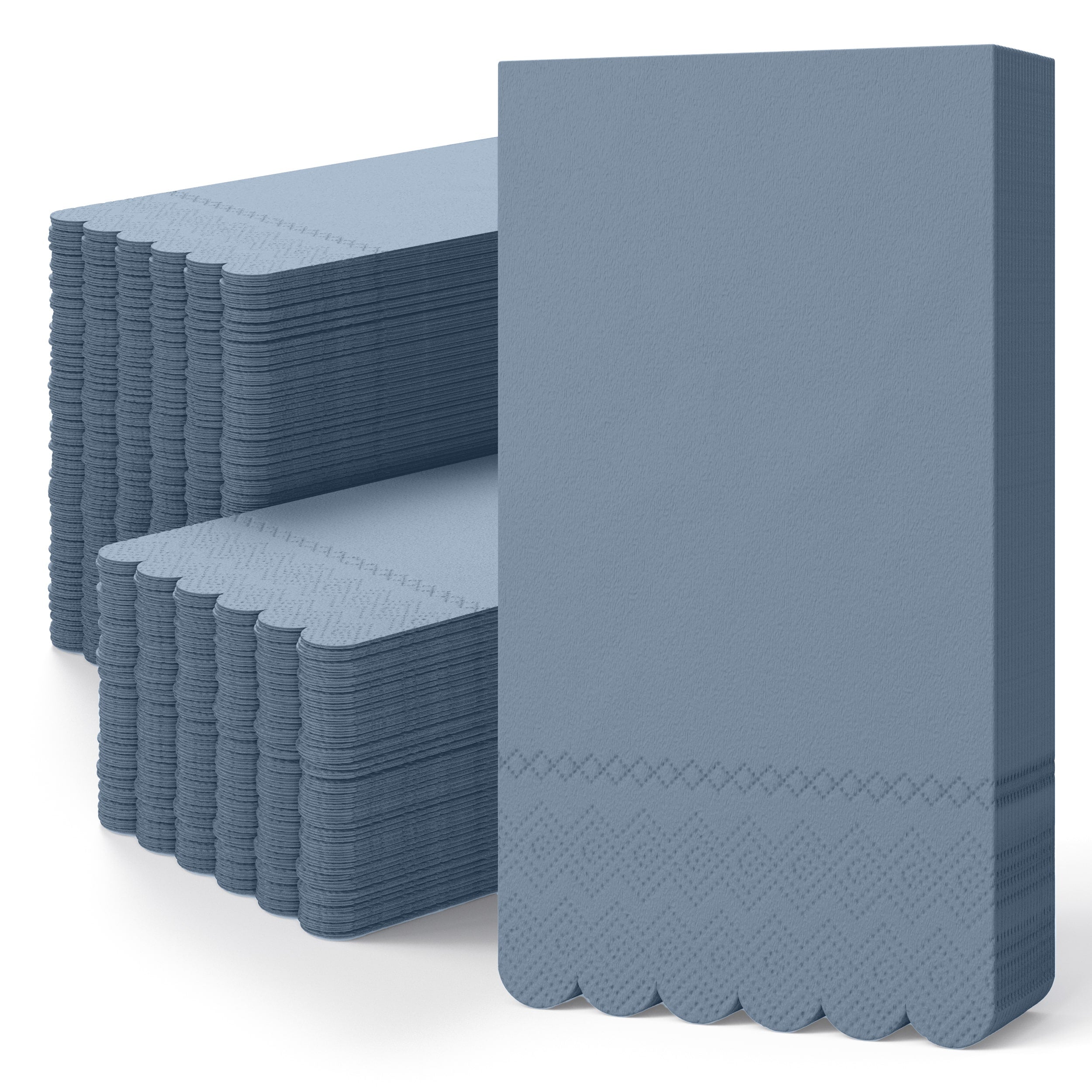 Introduce a stunning burst of rich color and texture to your next dinner setup with our China Blue Scalloped Dinner Napkins. These Navy-hued, 3-ply napkins bring a touch of sophisticated style to any formal meal or large gathering, providing the perfect decorative accent alongside practical use. Measuring 8 In. X 4.3 In. when folded, the elegant scalloped edge is a detail your guests are sure to notice.
